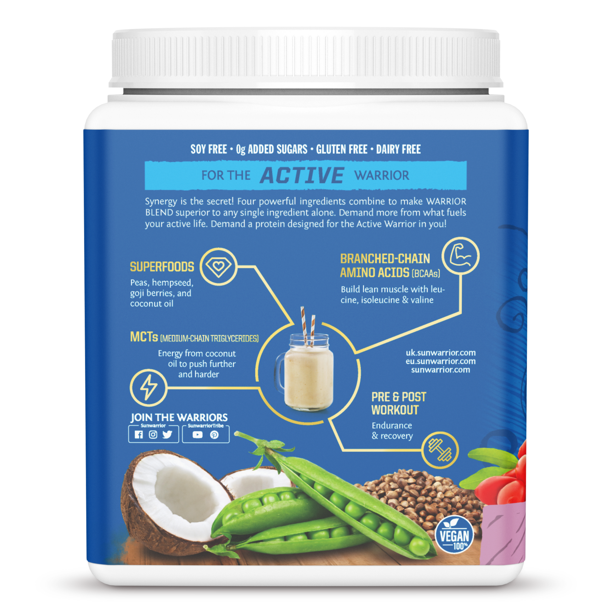 Proprietary Protein Blend (Organic Fermented Pea Protein, Organic Hemp Seed Protein, Organic Goji Berry), Organic Berry Flavor, Organic Medium-Chain Triglycerides Oil (Coconut Oil, Acacia Gum), Organic Guar Gum, Sea Salt, Organic Stevia Leaf Extract (Steviol Glycosides).
